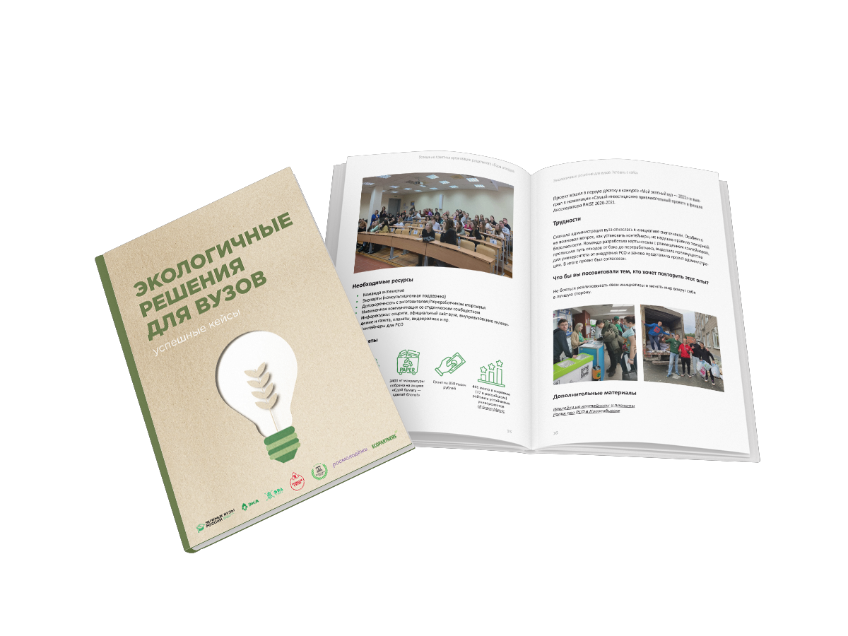 Успешные кейсы могут стать основой для создания ваших системных проектов по экологизации высшего учебного заведения. Их можно адаптировать и применить в любом ссузе